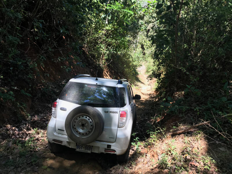 Na drie dagen relaxen zijn we naar het volgende plaatsje gereden, met als doel om daar te relaxen. Costa Rica is niet zo van de verkeersborden (wel van onverwachte, zeer hoge drempels trouwens) dus zonder navigatie rijden is wel een dingetje. We maken gebruik van maps.me, gratis en zonder wifi, lijkt perfect dus. Maar die mevrouw is nogal van de shortcuts. Dat zorgt soms wel voor leuke wegen, je komt nog eens ergens, maar zoals de rit door de bananenplantages ook voor behoorlijke vertraging zorgde. Dit gedeelte van Costa Rica is sowieso niet zoveel asfalt, door de warmte is dat al snel meer gaten dan weg, dus we keken niet raar op dat we al snel een zandweg ingestuurd werden. Leuk, beetje de grenzen van de 4x4 opzoeken, we hadden er lol in, helemaal omdat de natuur weer groen werd ipv droog, af en toe een riviertje door moesten kruizen en maar af en toe iemand tegen kwamen. Beetje avontuur. Maar dat beetje werd steeds meer. We werden wegen, of meer paden, ingestuurd die na een paar kilometer onbegaanbaar leken, dichtgegroeid of te hoge hobbels, en probeerden dan maar een volgende. Op de kaart zagen we dat we in the middle of nowwhere waren, maar de doorgaande weg kwam eraan, kon niet lang meer duren. We kwamen een schooltje tegen en zwaaiden nog heel enthousiast naar de kinderen, die ons verbaasd aankeken. Achteraf best logisch. Het duurde toch net iets te lang. De weg werd smaller en smaller, nog maar breed genoeg voor een motor of een paard en Cindy ging op de voetjes vooruit om te kijken of het ging. We waren er tenslotte bijna en terug was na twee uur rijden ook een slechte optie. Wel een beetje uitkijken voor de slangen en spinnen die in het dikke bladerdek kunnen zitten, maar alles went dus na voorzichtige stapjes kwamen kordate. Kom maar hoor, kan wel, zei ze zelfverzekerd. Ik zie het handje nog wapperen. Totdat we voor een bult kwamen en zicht hadden op nog twee bulten. En naast de bult een diepe grevel. We konden niet meer verder. Er kwam een jongen te paard aan en hij bevestigde dat, ook na de bulten was er geen mogelijkheid om door te gaan. Keren dus. We stonden op een behoorlijke helling, maar dachten we dat dat stukje bij beetje moest lukken. Wat moest je tenslotte anders. De greppel zorgde voor roet in het eten met als gevolg dat we afgezakt waren tot echt voor de bult en de enige optie nog achteruit was. Maar deze 4x4 is een playmobiel versie en bleek niet krachtig genoeg. Vast. Muurvast. Om te huilen zo vast. We hadden ons in de nesten gewerkt. Gelukkig zijn we een goed team en positief. Niet boos worden op elkaar maar de moed erin houden en naar oplossingen zoeken. Daar ben ik toch zo blij mee.